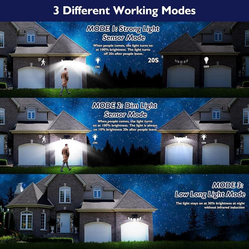 PIR人体センサーは,最大32フィート / 180°の検出範囲を有します. 3つの明るさレベル (1000/2000/3000lm) と3つのモード (センサーモード/恒常光低光/低光+センサー) をサポートします.遠隔調節可能.